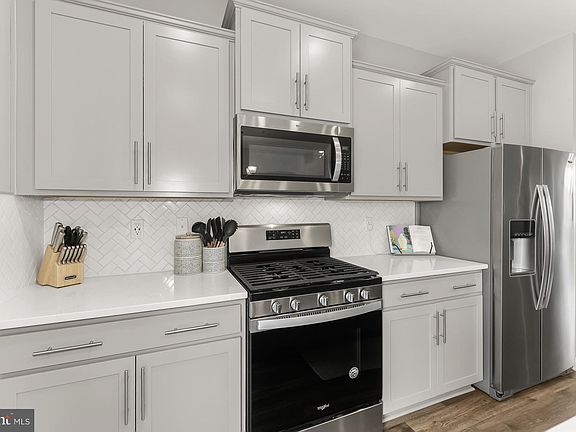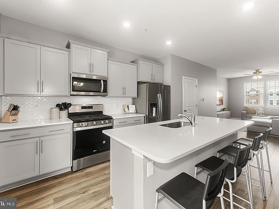 Stunning 2020-built townhome shows like a model with spacious design-inspired interiors and fine finishes throughout! This D.R. Horton, “Columbus” model offers a perfect blend of elegance and comfort. As you step inside you are greeted by the warmly functional family room that could also serve as a home office, exercise or recreation space allowing for endless opportunities to suit your lifestyle needs. Upstairs, the open-concept floor plan seamlessly connects the living, dining, and kitchen areas, creating a spacious and inviting atmosphere. Large windows, a sliding glass door, and recessed lighting flood the space with light, illuminating the luxury vinyl plank flooring, professionally painted neutral color palette, and tasteful finishes throughout. Featuring both functionality and style the kitchen is equipped with gray shaker cabinetry, stainless steel appliances including a gas range cooktop, sleek quartz countertops, herringbone tile backsplash, and a large island with breakfast bar for casual dining. The flowing floorplan with the adjacent living and dining rooms is ideal for entertaining and everyday convenience. The primary bedroom is a true sanctuary, boasting a spacious layout and a tranquil atmosphere. It features a walk-in closet with built-in closet system, and an en-suite bath with a double vanity and a tiled shower. Two additional bedrooms, the laundry room and a full bath conclude the upper level. The deck off the kitchen provides an ideal spot for al fresco dining. The property also includes a finished two-car garage, ensuring convenient parking and additional storage space. Enjoy the community park with gazebo and grilling station. Great location that is convenient to a multitude of shopping, dining, and entertainment options in nearby Woodmore Towne Center. Property Updates: kitchen backsplash, finished garage, professional interior paint, powder room updates, bath light fixtures, and primary closet built-ins.