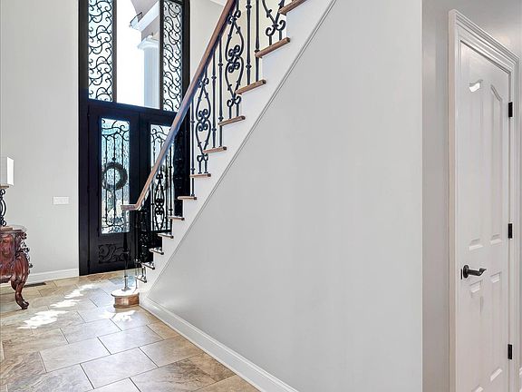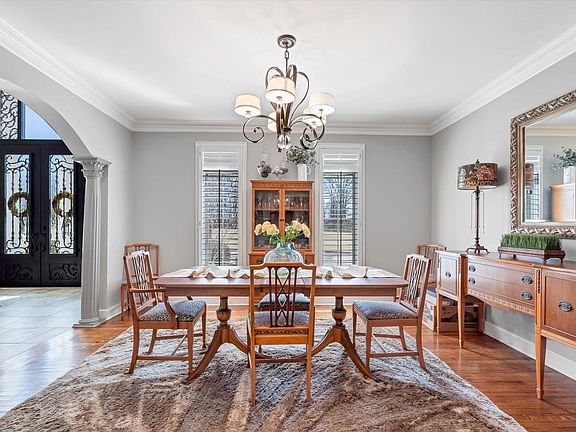 Elegant. Magnificent. Grand. This estate home on 4 acres is in the exclusive RidgePointe Country Club subdivision. The 2-story soaring entrance to the foyer & living room is breathtaking. Hardwood flooring with mahogany enlay leads you seamlessly throughout the main level of this lavish home. The chef's kitchen is beautifully & thoughtfully appointed with large island & stunning onyx & mother of pearl backsplash. Open to the kitchen is a 2nd living area for guests to mingle and continue to share in the kitchen activities. The primary bed & bath is a retreat with a luxurious spa bathroom. A 2nd large dining area or sunroom, leads onto the screened in porch with wooden ceilings, gas grill, sink, refrigerator, & gas firepit. The built-in hot tub with stone accents in this incredibly private setting is so peaceful. You're overlooking 17 acres between you and your nearest backdoor neighbor. Upstairs has picturesque views and 2 more living areas, 3 bedrooms, and 2 full bathrooms. Downstairs is a walk-out suite with kitchenette, full bathroom, with separate private driveway located off the adjoining Sawgrass Street & garage. Truly, a one of a kind that you will love to call your home!