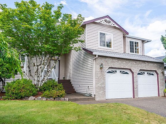 Bright and cheery home with lots of open space inside and out! Spacious living room, dining room, and family room all with double-pane storm windows with premier window-coverings included. Beautiful chandeliers in front room and dining room, with wood flooring, carpet, and laminate flooring throughout. Large kitchen with tile countertops, gas range, dishwasher, double-sink, and built-in microwave, breakfast nook looking out into secluded fenced-in landscaped back yard where you’ll often see wild bunnies and hummingbirds. Kitchen Island has been removed but is available if desired. Family room on the lower level is ideal for Tv/entertainment, and includes a gas fireplace, and connects to the garage on the lower floor, with sliding glass door out to patio in back yard. New front porch made of Trex composite decking. Bedrooms all have ample closet space, with a walk-in closet in the master. Master bedroom has vaulted ceilings, newer skylights, a walk-in closet, jetted tub and shower, as well as decked crawlspace for additional storage. Wonderful views of the mountains, with sunset views to the west. Central air conditioning with programmable thermostat included. Multi-zone automated sprinkler system in both front and back yards. Automated security system already installed.