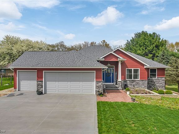 Immaculate 4 BR 4 BA Copley Ranch situated on a 2.5 acre lot overlooking the Barberton Reservoir. This 3 year old home is better than new construction with it's beautiful finishes and nice landscaping. You will love the open floor plan with vaulted ceilings and lots of natural light. The kitchen features an island with breakfast bar and soapstone countertops and ceramic flooring. The master suite features separate access to the elevated deck for enjoying the morning sunrise and includes a master bath with a spa tub, tiled shower, granite tops and ceramic flooring. First floor laundry also includes granite surfaces and ceramic flooring. The fully finished lower level could easily be used as an *in-law suite as it includes a bedroom, full bath, full kitchen, and a family room. Lower level opens to a concrete patio and fire pit area. The oversized 3 car garage includes 8" high doors and epoxy floors. This home is also protected with a whole house Generac back-up generator. This is the true definition of a custom built home and was designed and built by the current owner. No corners were cut on the construction of this home. Some examples are the foundation that was constructed with 12" block and the cores filled with foam for extra insulation for the lower level, 5" thick re-enforced concrete drive with extra parking, oversized gutters and downspouts, 40 year shingles, underground utilities, and commercial grade plumbing fixtures throughout the house. No shortcuts taken here!