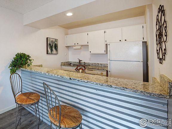 This centrally located 2nd floor condo is as cute as a button! Enjoy the morning sun from the large, covered balcony with sliding doors from the living room and bedroom. Newer granite kitchen counters, stove/oven, vinyl plank flooring and paint. Super low HOA dues include heat and water, plus laundry facilities, interior courtyard & pool. Super handy to the bike path & Rayback Collective. This is a sweet unit and might just be the best value in Boulder!