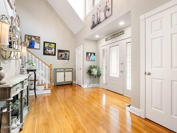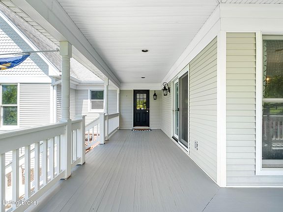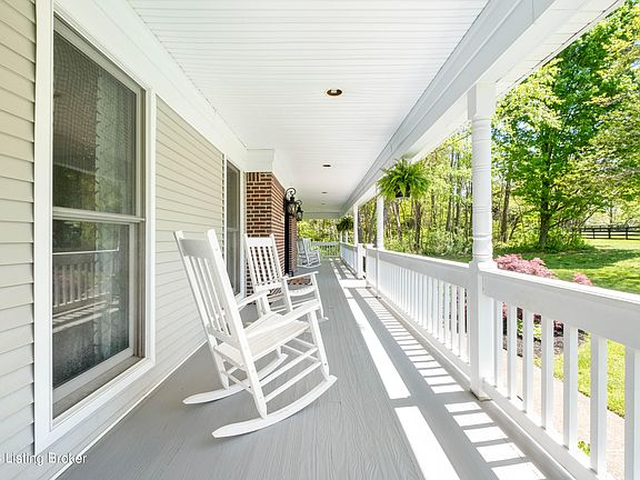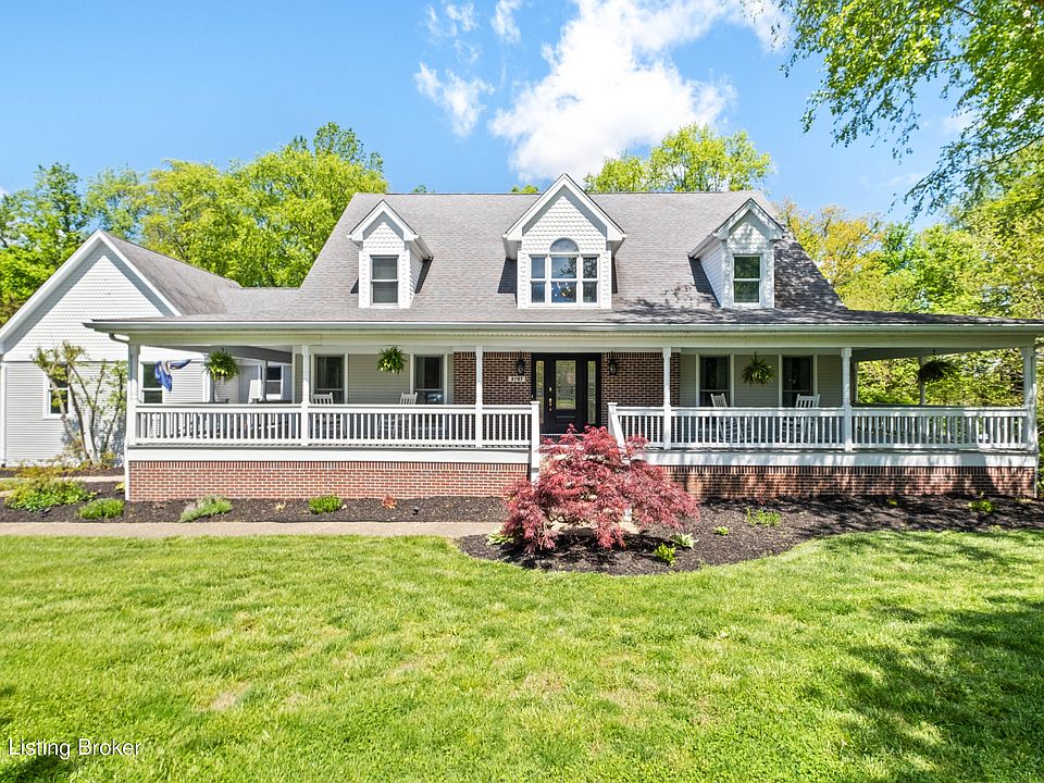 Cape Cod on 1.5 Acres, Inground Pool, Primary First Floor Bedroom, plus Second Bedroom on First Floor, and In-Law Suite with Full Eat-In Kitchen in Walkout Basement. Check out this 5 Bed, 4.5 Bath with over 4800 Square Feet of Living Space. Enter through the covered wrap around front porch to the impressive 2 story foyer. The great room has a stone fireplace, vaulted ceiling, and access to the deck. The kitchen features plenty of cabinet and counter space, honed granite, tiled floors, and a butler's pantry. The spacious dining room is ready to entertain with hardwood, bead board, and chair railing. Primary Bedroom is on the first floor at the back of the house and has access to the deck with a large primary bath with jetted tub, tiled floor, separate shower, water closet, dual vanities, custom cabinets, and a walk-in closet. There is also a second bedroom on the first floor that has bead board, shiplap and 2 closets and a second full bath just outside the door. The first floor is completed with a mud room with 2 boot benches, laundry room with cabinets, and a half bath. Upstairs there are 2 good-sized bedrooms with the alcoves you would expect in a Cape Cod. One has an oversized closet that could be a great office, gaming area or place to study. The catwalk between the bedrooms overlooks the great room. The 3rd full bath is on the second floor. The basement offers many opportunities. There is a bar and game area with newer flooring, family room with stone fireplace, a full eat-in kitchen, oversized bedroom, and the 4th full bath. In addition, there is still plenty of room for storage. Out back, enjoy the treed 1.5 acres from your deck. Down below, just in time for summer, hop in the inground pool and enjoy the beautiful setting. All this and just a short trip to Downtown LaGrange, the Farmers Market, Restaurants, Shopping, Groceries, Oldham County Country Club, Parks, Oldham County Youth Football, Oldham County Youth Soccer, Oldham County YMCA, I-71, and Award-Winning Oldham County Schools.