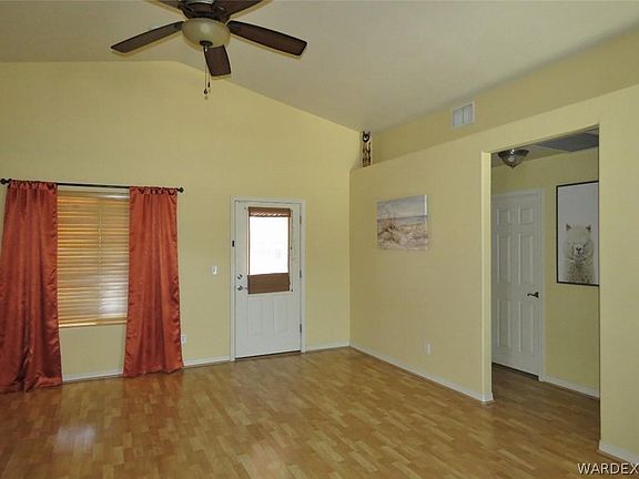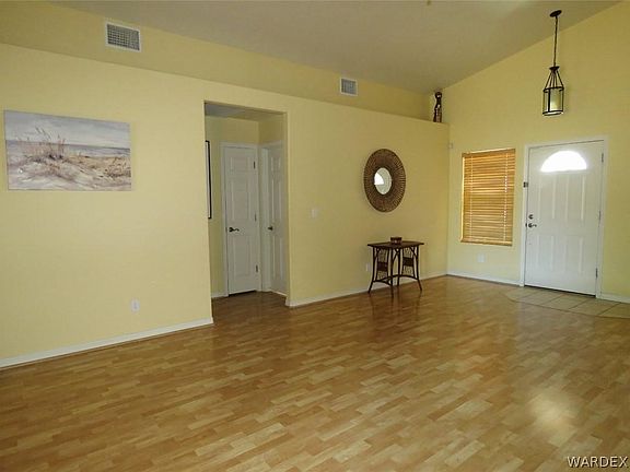 This 2006 One Owner Home is Clean and Move In Ready with 1,279sf, three bedrooms and two bathrooms. Bright and cheery interior has vaulted ceilings, pot shelves, ceiling fans and window blinds throughout. Kitchen has granite counter tops, big sink with low bowl divide, new faucet and stainless appliance including a Kenmore five burner gas range and refrigerator. Laundry room is off the kitchen with a pantry and gas and electric hook ups. The main bedroom is carpeted with a nice big walk in closet, single vanity and a walk in shower. Guest wing is on the east side of the home, the two bedrooms share the hall bathroom with a single vanity and a tub shower combo. The attached two car garage has an auto opener, gas water heater and cabinets. Yard is fully landscaped with lots of roses, covered rear patio and block walls. Home is in Hualapai Elementary School district close to parks and splash pad. Seller is willing to pay up to $1,500.00 of Buyer Costs, plus up to $600.00 for a Home Warranty ~ 2707 Wickieup Ave. Kingman, AZ