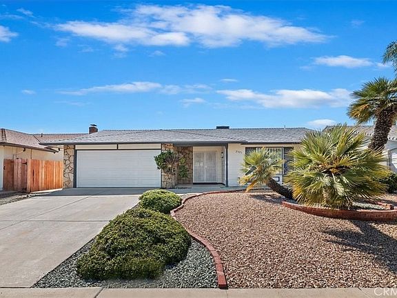 Welcome to resort-style living in the highly desirable 55+ community of Sun City Civic Center in Menifee! This beautiful upgraded single story home is truly move-in ready, With New Roof, A/C, and fresh interior & exterior Custom Paint. You will love the low-maintenance desert landscape and inviting front porch with swaying palm trees. Then entering through double doors into an open entryway with upgraded tile flooring, leading into a spacious living room featuring new waterproof rigid core luxury vinyl flooring that flows seamlessly through the kitchen, dining area, hallway and both bedrooms. The remodeled kitchen is a standout showcasing elegant quartz countertops, a sleek backsplash, freshly painted cabinets with modern hardware, a new stainless steel sink and faucet, plus brand new appliances including stove, cooktop, hood and refrigerator. The primary bedroom offers mirrored closet doors, updated lighting and a sliding glass door (with security bars) that opens into the sun room-perfect for relaxing or entertaining-with brand new indoor/outdoor carpet. The primary bathroom features a stylish new vanity, upgraded light controlled mirror, new tub and shower and lovely tile flooring. The second bedroom is equally impressive, with a huge closet, ceiling fan and pocket door that leads into the remodeled 2nd bathroom also includes a new vanity, another light controlled mirror, walk in shower with modern doors and lovely tile flooring. Enjoy a spacious backyard with mature fruit trees-fig and lemon- the backyard is fenced on the north and south side with wood and vinyl fencing the west side is beautifully lined with tall shrubs for privacy. The 2 car garage has a new garage door. Community amenities abound, including two sparkling pools, spa, fitness center, shuffleboard, lawn bowling, horseshoe pits, and countless clubs and activities. With low HOA and taxes, this is senior living at its finest . Don't miss the opportunity to call this stunning home your own!