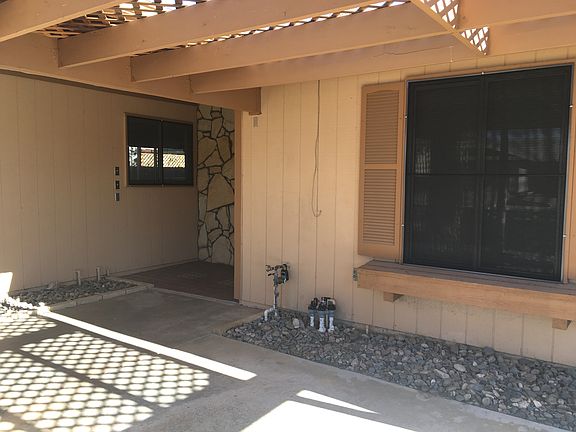 Just Listed! Desirable single story home in 55+ Community of Menifee. This attractive Presley 38 model features 1,393 sq. ft., 2 bedrooms, 2 baths, Den, and 2 car garage. Has nice Open floor plan w/ semi formal entry, Living & Dining room. Living room has cozy Fireplace w/Hearth- adding to home's warmth and charm! Kitchen is good size w/ breakfast nook, Formica counters, laminate floors, dishwasher, and newer Range & microwave! Other features; newer neutral carpeting, vinyl flooring in baths, ceiling fan, sliding doors & central heating/air. Has a Large Master bedroom w/vanity seating area, and large walk in closet. Master bath has fiberglass tub/shower combination that is easy to maintain. The hall bath has shower with newer style glass sliding door, and single sink cultured marble vanity -shows clean! The 2nd bedroom is good size, has mirrored closet doors, plus a pocket door that goes into hall bath. The Garage has built in cabinets, newer electric water heater, metal roll up door w/auto opener, and the washer & dryer stays! Home is situated on 7,841 sq. ft. lot, is fenced, has rain gutters, exterior lighting, and low maintenance front/rear (rock) yard filled with plants, shrubs and trees. There are 3 covered porches-front, side & rear that is perfect for BBQ's and outdoor entertaining! To top off all the amazing features this home has to offer is its new owner will benefit by Low taxes, and membership in the Sun City Civic Association with 60+ clubs and amenities to enjoy. Annual dues $335.00 per year.