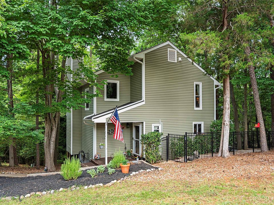 Are you looking for Charm? This "Tree House" has tons of it! Walking distance to Tega Cay golf course/clubhouse/marina and Runde Park. This 2 Story, 2 Bedroom, 1.5 Bath Home located on a wooded, corner lot, in the highly desirable Tega Cay is sure to impress! NO HOA! Open Floor Plan! Kitchen offers plenty of counter space & tons of cabinetry for storage! Cozy Dining Area just off the Kitchen! Living Room features wood burning fireplace & back deck access! Relax & unwind! Fenced in yard with fire pit. Enjoy Tega Cay amenities: Walking trails, Fitness center, Clubhouse, Playground, Tennis/Pickleball, Golf, and much more!