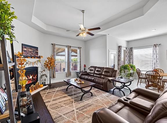 Popular DR Horton 1 story plan only 2 years old and in the coveted community of Silverado in AUBREY ISD!4 bedrooms,computer area,2 baths.This Floor plan is perfect for entertaining from the Open-concept kitchen and living room with breakfast bar,gas range,Coffee Bar,granite countertops,SS appliances.Gas Starter Fireplace.Extended Covered Back Patio with Firepit and backyard big enough for all the kids toys.Gorgeous engineered wood floors throughout main living area with carpet in the bedrooms and tile in all the wet areas.Split floor plan creates privacy for the master with walk-in closet..Amazing community with resort-style pool, clubhouse, splash pad, walking trails, parks and on-site Fuller Elementary School