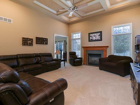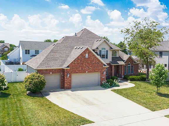 This beautiful 4,350 sq ft John Holt-built home in Eagle Crest East features 5 beds, 4.5 baths, 3-car garage with 220 amp service, and 3rd garage stall is 25' deep. The main floor boasts a two-story great room with gas fireplace, formal dining room, Brazilian cherry hardwood floors, and a gourmet kitchen with granite countertops, large island, 42 maple glazed cabinets, and retractable exhaust vent. The first-floor master suite includes a walk-in closet, double vanity, jetted tub, and separate shower. Main floor office/library with custom paneled walls. Upstairs, find 3 more bedrooms, one with en suite bath, and a Jack and Jill bathroom. The finished basement offers a huge family/theater/game room with theater projection system, wet bar, a 5th bedroom, and full bath. Fenced yard and patio out back. First-floor laundry with mud sink, counter, and cabinets. Come see this beautifully maintained home today!