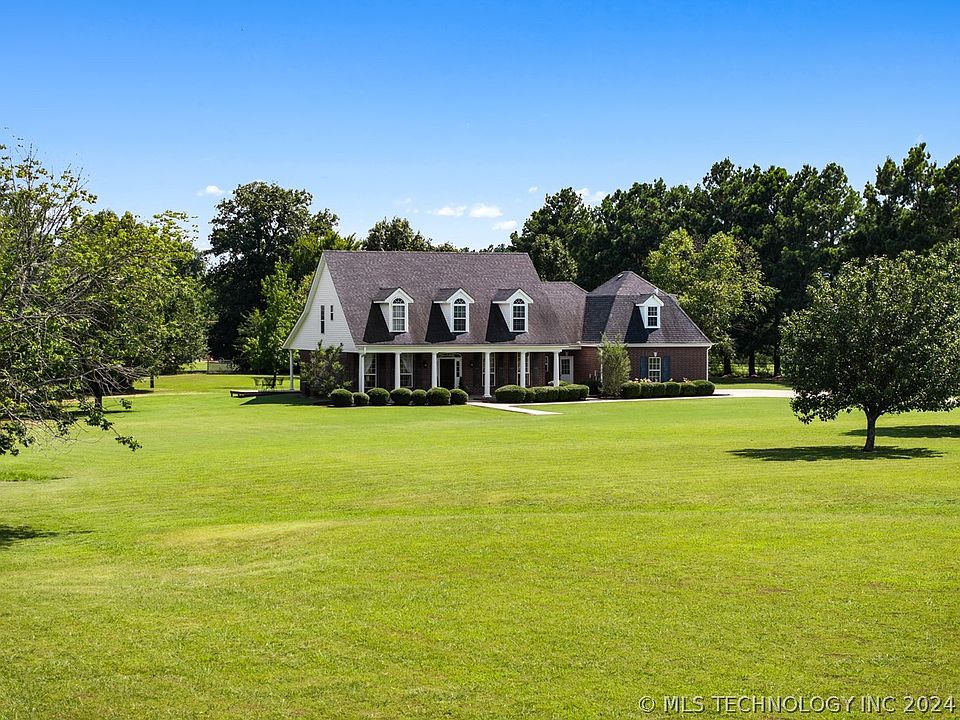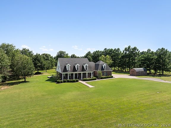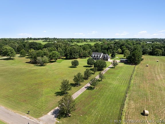 Fantastic opportunity awaits you as you enjoy this home that introduces ranch living meets Gone With The Wind. The home is situated on five acres and is boldly positioned with tall white columns and a covered porch. The grounds of this property are inspiring. The long driveway, bordered by trees, welcomes you to your home. The entire property is full of opportunities to enjoy, entertain, and just be present in the country quiet at the end of the day.