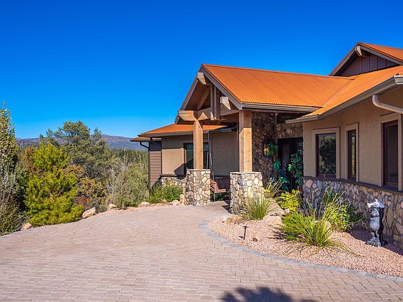 Your guests will be impressed driving up to this house, with its architecturally striking metal roof, but they won't be able to stop talking about the views from the back. Relax on your elevated, expansive wrap around Trex Decking porch, while you soak in the forest and Mogollon Rim Mountain views that stretch for miles. Located in coveted Chaparral Pines Country Club and situated just beyond the third hole, this single level, split floor plan rests on almost half an acre.
