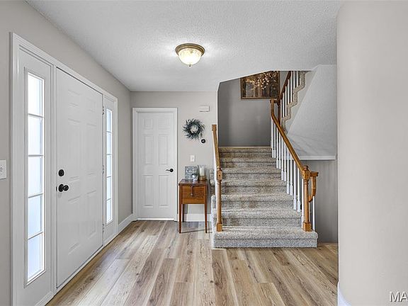 Showings start Sat 27SEP. Truly a turn key move in ready home. The beautifully maintained classic 2 story home sits on a private wooded walk out lot in Stonebridge Farms. Open and airy main level has new solid surface luxury laminate flooring throughout along with new baseboards and fresh paint. The large living room features new plantation shutters & a cozy gas fireplace, perfect for relaxing evenings & holidays! The kitchen is outfitted with sleek stainless steel appliances, lots of cabinetry, & Silestone countertops, flowing seamlessly into a sunny breakfast room where the sliding patio door leads to a spacious deck overlooking a private, wooded backyard with a gentle creek—ideal for morning coffee, evening unwinding, or entertaining! Upstairs, the spacious & vaulted master suite includes a newly remodeled luxury bath with dual vanities, a whirlpool tub, separate tiled shower, and a generous walk-in closet. Two additional bedrooms offer plenty of room, with one also featuring its own walk-in closet. Nicely finished lower level expands your living space with a large family room, game area, and a convenient half bath. There's still room for storage, and the walk-out leads to a partially covered concrete patio—great for entertaining or quiet outdoor time. Recent updates include a new roof/siding (2017), new water heater, coretec flooring in some baths, luxury laminate flooring, new storm door, lots of landscape work, Level 2 electric car charger in garage, and a stunning master bath renovation. This home blends thoughtful updates, excellent stewardship/maintenance with natural beauty and functional design. All located close to everything the metro east has to offer & close to interstates/highways. Call your favorite broker to set up a showing while you can!