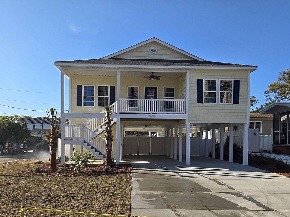 4BR / 3BA new construction raised beach home only a block from the ocean and right in the middle of all that North Myrtle Beach has to offer. Home features: 9 & 10' ceilings, master suite with double vanity and tiled shower. Kitchen with white cabinets inc 42" uppers and crown molding, granite countertops with 7' peninsula bar top, Stainless Whirlpool appliance package, large laundry room, two bedrooms share jack & jill bath and 4th BR has full bath with access from great room as well. Covered porch on front and rear of home, trex decking, white vinyl railings, large storage room on ground floor, concrete driveway with 12x25 heated pool with paver decking and frivacy fencing, fully landscaped and irrigated yard. - Prime location - walk / bike / golf cart the beach, restaurants, shopping, mini golf, ice cream and nightlife. Excellent vacation rental potential.