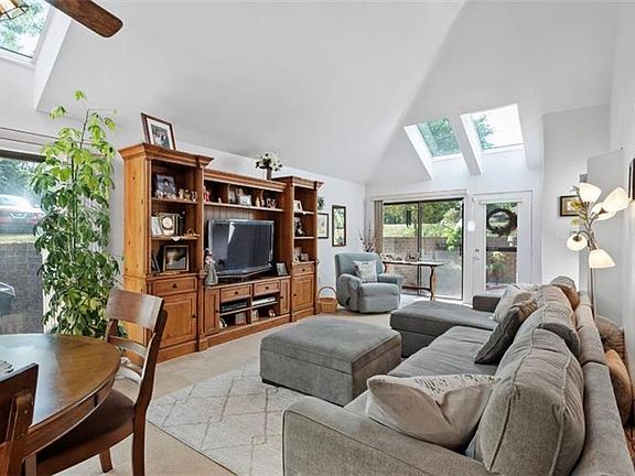 This first floor, end corner unit sits on the quiet street of Leona Lane. The large enclosed and private patio is accessible from the living room and bedrooms with three sets of patio doors. The private side cooking area has a built in natural gas grill. The interior will surely impress with hardwood and pergo floors, granite kitchen counter tops, cathedral ceilings and skylights throughout to bring in a tremendous amount of natural light. The main bedroom includes a luxurious jet spray bathtub, extra closet space and laundry room either side of bedroom hall. Second bedroom could also be used as a family room. New HVAC, Roof and Skylights. Extra indoor storage locker on right side of building. Close to the airport and downton. You also have direct access to ample shops, eateries, entertainment, and parks.