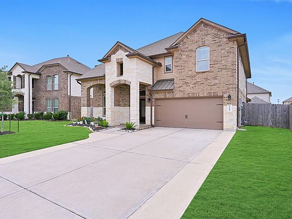 Welcome to this tastefully updated 4-bedroom, 3.5-bath home nestled in the desirable Bakers Landing community, zoned to top rated Pearland ISD! Inside, you'll find fresh paint throughout, a formal dining room, and an open-concept living area with durable tile flooring-perfect for entertaining or daily living. The chef-inspired kitchen offers rich, espresso cabinets, granite counters, a generous center island, and stainless steel appliances.Upstairs, enjoy oversized secondary bedrooms, a versatile game room, and a dedicated media room ideal for movie nights or a home office. Enjoy outdoor living on the extended front porch and covered back patio, ideal for relaxing with family and friends.Additional highlights include an extended driveway, tankless water heater, radiant barrier and a whole-home generator (installed in July, 2024) with automatic transfer switch and transferable warranty. Ideally located just steps from a stocked pond, scenic walking trails, and a neighborhood playground.
