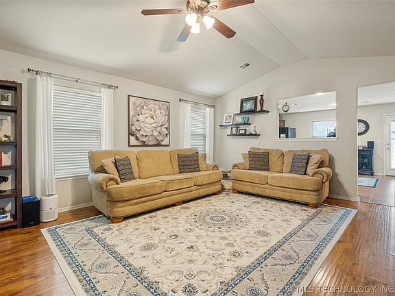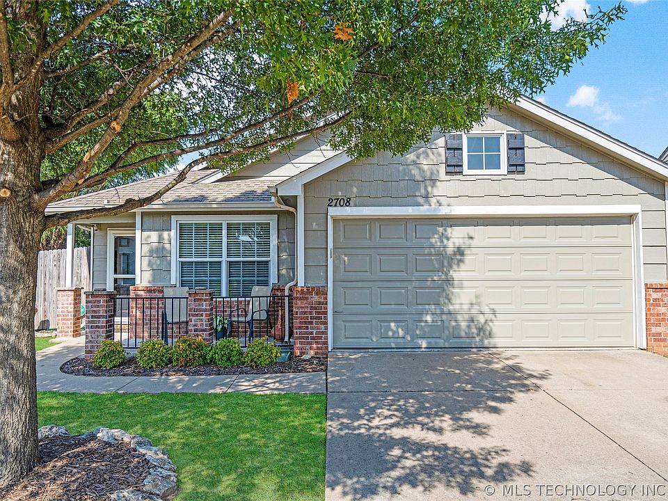 WELCOME HOME! Fantastic Broken Arrow location provides quick access to schools, retail, dining, entertainment and highways. This well-maintained, single story home has a living room with vinyl wood grain flooring. Spacious eat-in kitchen features granite counters, a gas stove, nice-sized pantry and access to the back patio. Indoor laundry room. Primary bedroom with full ensuite bathroom. Split bedroom floor plan with two bedrooms and a full bathroom on the other side. Enjoy your coffee on the quaint front porch with a decorative brick and iron fencing. So much curb appeal! Fresh exterior paint. Attached two car garage. Covered concrete and flagstone back patio, full privacy fencing, plus a storage shed.
