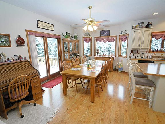 Escape from the ordinary at 'Peaceful Pines'. This property offers a stunning, custom-built home nestled on nearly 20 gently rolling wooded acres and not too far from beautiful Lake Meauwataka. The main level hosts two bedrooms, two full baths, large open living room with stone fire place, laundry/mud room and more. Sophisticated kitchen with perfect blend of modern design complete with functional island, custom cabinets, and solid wood floors. Large windows throughout not only lend an abundance of natural lighting but commanding views of the wildlife in their natural surroundings. Full daylight basement is ready for finishing with more bedrooms, family room and or large game room. Outdoors enjoy nature's playground amongst the pines, garden area with custom garden shed, apple trees, raspberry and black berry bushes. Large pole building with electric. This property is picture perfect and ready for it's new owners. PLUS an Energy efficient GEO Thermal heating system!!