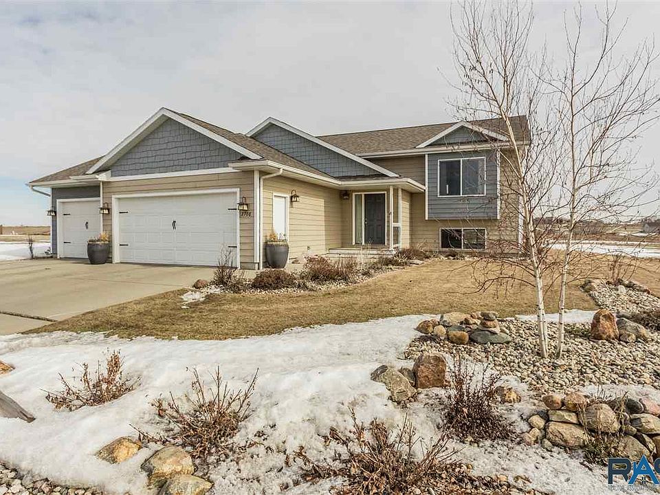 Great 4 bedrooms, 2 bath home with all new carpet in North Western Sioux Falls. Floor plan is very open with vaulted ceilings. Kitchen is very nice with nice appliances and center island. Master bedroom features impressive tray ceilings and double closet. Lower level features a family room with garden windows and two more finished bedrooms and a bath. TRIPLE CAR GARAGE IN THIS PRICE RANGE HARD TO FIND!