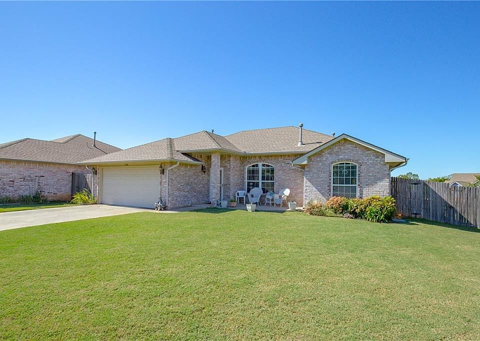 Beautiful, well-cared-for home in fantastic North Norman neighborhood! Great location; Close to good schools, easy access to the highway, central Norman, shopping, and more! The spacious split floor plan is prefect for young or starting families. Huge living room with cozy fireplace, big functional kitchen with pantry, and breakfast bar. Large primary bedroom and bath, with separate tub and shower, double vanities, and huge closet. Large secondary bedrooms with tons of closet space and a great big yard for the kids to run around in. Roof updated in 2015. Above ground safe room/storm shelter in the garage! Enjoy a safe, friendly environment - A perfect place to call home!