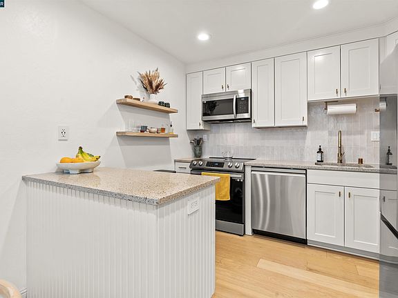 Welcome to your dream condo, perfectly positioned between two BART stations for effortless commuting. You'll love being minutes from the Bay Club, Walden Park, and the scenic Iron Horse Trail, while downtown Walnut Creek’s renowned dining, shopping, and entertainment are just a five-minute drive away. Step inside to discover a beautifully updated home where no detail has been overlooked. The designer kitchen features sleek stainless steel appliances and updated finishes. Luxury vinyl plank flooring. Sleek modern fixtures. Fresh designer colors. This home delivers style in every detail. Thoughtful touches like floating wood shelves, updated closets, and a built-in hallway shoe holder add both function and flair. Off the primary bedroom, enjoy your morning coffee on a private deck, or unwind in the evening on your charming front porch, complete with a decorative wall and whimsical string lights. With no neighbors above or below, this unit offers a little extra privacy. In addition the complex has a community pool and permitted parking for two cars. Don’t miss the opportunity to own this stunning, move-in-ready condo in one one of Walnut Creek’s most convenient and desirable locations. Come see it in person—you won’t want to leave.