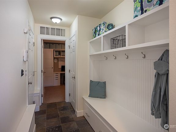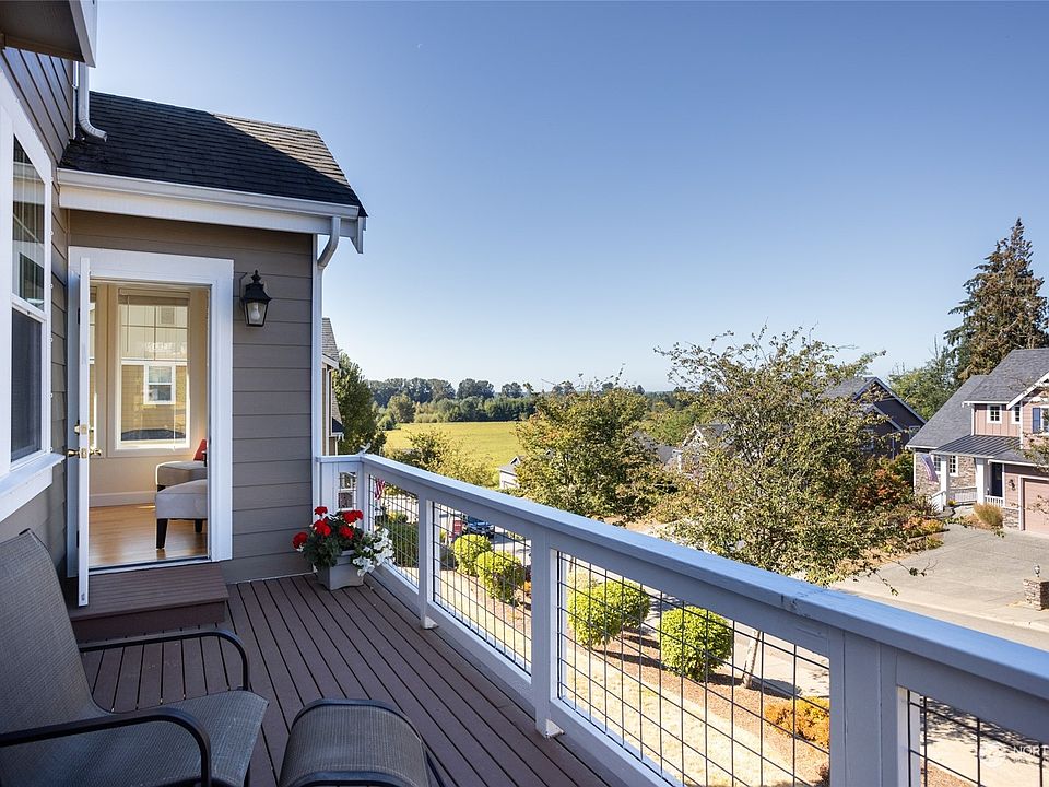 Imagine sitting on this spacious deck having your favorite beverage and enjoying the view of the lush green valley and Skagit River. Enter in through the lower level from the front door with built-in coat rack-storage and office/craft room. Continue upstairs to the main level where you will find an ample kitchen with SS appliances. Kitchen to dining provides convenient set up. The living room has a gas fireplace. Off this great room is an area left for you to decide what goes there. The upper level has primary bedroom and 2 large bedrooms and 2 large baths. More views from bedroom windows. The mud room off the kitchen has a W/D with slop sink and storage-this takes you to the back yard with deck and pull down shades for additional privacy.
