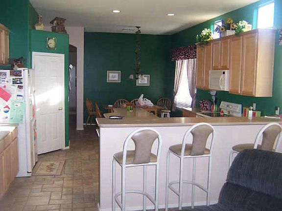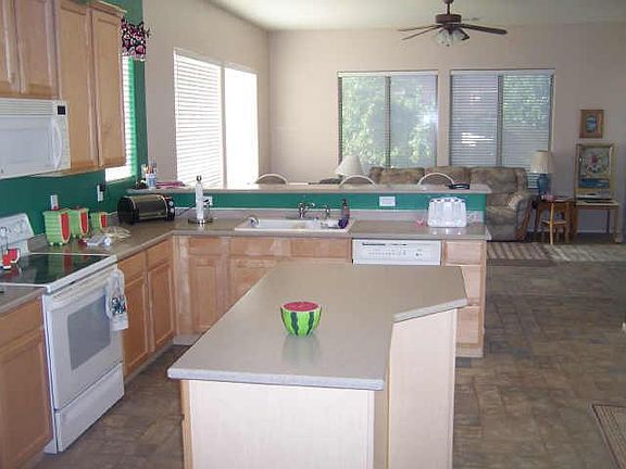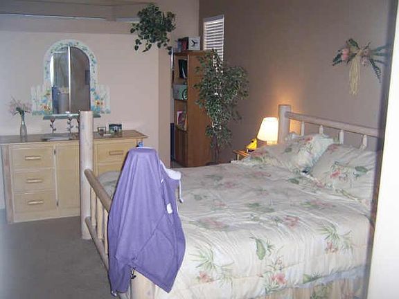 Beautiful home in Augusta Ranch Golf Community. This 4 bed 2 bath home has lots of upgrades. Awsome backyard includes a Mosaic Dolphin peable smooth pool with 2 water features,a grassy play area,gas run for BBQ,Orange and Grapefruit tree,Queen palms,RV gate etc...Kitchen has Corian countertops and nice Island,breakfast bar and eat-in area. Homes like this don't come around very often, lock-in the price now for Equity in June.Curtains and Valances do not stay with the house (custom made for the Daily's). Elementry school in the neighborhood. Great neighbors. Wall in the Master bedroom is portable and can be removed at the buyers request.