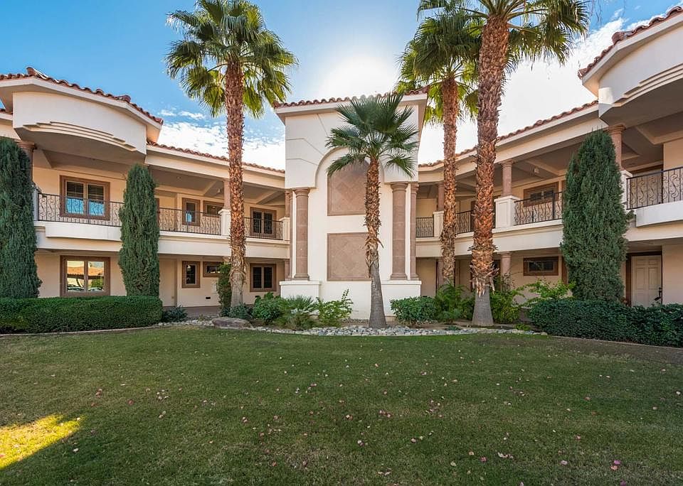 This lovely 1 Bedroom 1 Bath condo in the exclusive Palm Desert 55 plus community is ready for you to move right in! Take the stairs or elevator to arrive in this second-floor immaculate condo which is gorgeously decorated, featuring a fireplace, recessed lighting and a bar area which offers views of the majestic mountains of Palm Desert from your patio off the living and bedroom areas. The kitchen is well appointed with stainless appliances and granite countertops and plenty of cabinet storage. The bath offers dual vanity sinks and granite counters. There is a large walk-in closet in the bedroom and a stackable washer dryer in a dedicated closet for laundry. HOA dues include Cable TV with expanded movie channels, high-speed internet, gas, water, trash, quarterly window washing, landscape, building insurance, roof and exterior maintenance. Relax and dine in Villa Portofino's 32,000 square foot clubhouse with a Bistro, free movies in the 100-seat theater, fine dining, billiard room, bridge room, library, conference room full time concierge, lap pool and complimentary yoga, tai-chi, Zumba and aquatic classes. Close to local shopping and entertainment. Come live the fine life of Palm Desert!
