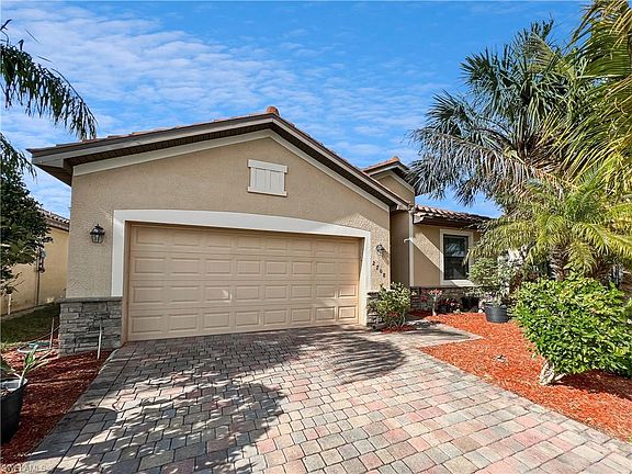 Check out this "Capri" floor plan by Lennar! Your 2014-built home offers 3 bedrooms, 2 baths, NEARLY 1700 SQ FT under air & attached 2 car garage! An excellent use of space, you'll be amazed by the openness of this plan! Eat-in kitchen is complete with expansive breakfast bar, lots of cabinet & counter space, glass tile backsplash, wood cabinetry, stainless appliances, large pantry & granite countertops! Tile on the diagonal throughout the main living areas make home maintenance incredibly easy! Great room, which opens to pavered/screened lanai, also boasts crown molding! Master suite is well-appointed with crown molding, walk-in closet, soaking tub, separate shower & expansive vanity with double sinks. Located on a quiet cul de sac with a solid exterior wall in the rear, you'll love the privacy of this lot's location. Garage offers heavy duty overhead storage ~ ideal to store bulky items without losing floor space. Did we mention location? Minutes to I-75 with access to a myriad of shopping & dining options, RSW International Airport, and so much more! Whether you are looking for a year-round home or a place in the sun to escape the winter months, this could be your dream home!