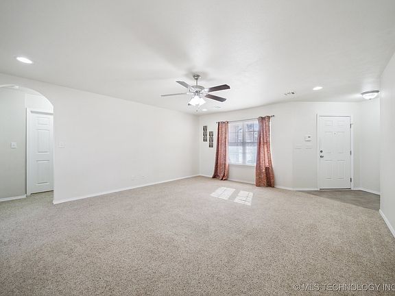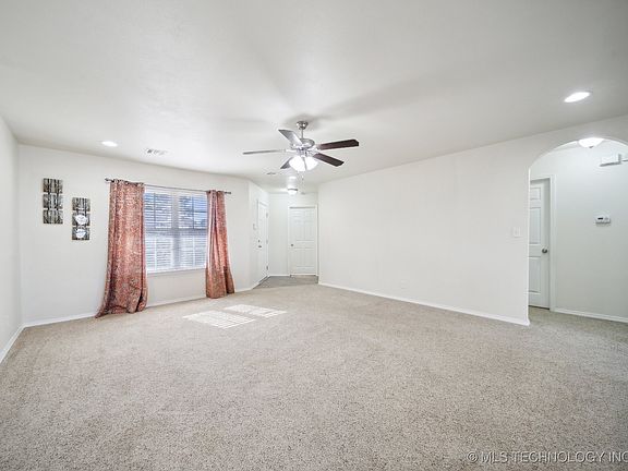 Remarkable four-bedroom home in the coveted Iron Horse Ranch Addition! This delightful residence boasts an open floor plan that effortlessly merges the expansive living room, featuring a vaulted ceiling, with the well-equipped kitchen. The kitchen is designed with a large wrap-around countertop ideal for casual dining, complemented by a spacious dining area for more formal occasions. The master suite includes a private bath with double sinks and a walk-in closet. Throughout the home, ample closet space ensures plenty of storage for all your needs. Step outside to the covered patio area just off the kitchen, leading to a large, privacy-fenced backyard perfect for relaxation and entertaining. Positioned on a corner lot, this home offers a larger lot than most, with enough space for a pool! The neighborhood amenities include a park, pond, and clubhouse, ideal for family activities and community engagement. Additionally, the location is conveniently close to Creek Turnpike, making commuting a breeze. Don't miss the chance to make this wonderful home yours in the vibrant Iron Horse Ranch Addition!