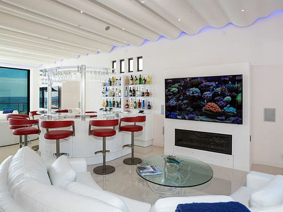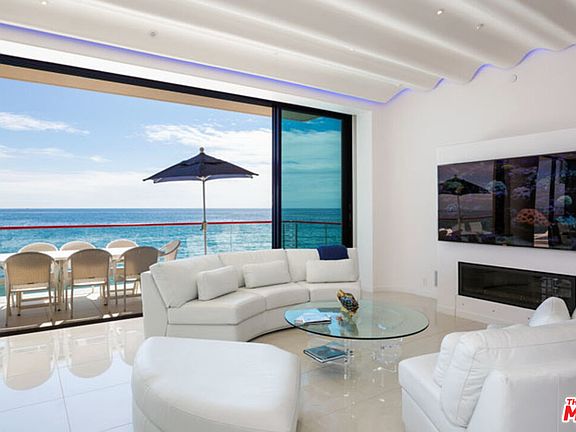 Here is absolute luxury, privacy, and hospitality in an idyllic oceanfront setting with nonstop sunrise to sunset views and every amenity for sophisticated living and entertaining. A stunning achievement by architect Norman Jarrett, well known as the creator of the Dolphin House featured on NBC Extra's "Mansions and Millionaires," this sleek contemporary is all about open space, lavish light, and seamless indoor-outdoor living. The SeaGlass House is perfectly situated in the gated and beautifully landscaped private community of Malibu Cove Colony, convenient to the luxurious dining and boutiques of central Malibu as well as the exquisite sand beaches along this impeccable shore. Complete with gorgeous Italian leather furniture and original artwork, every room is designed for a lifestyle of majestic comfort. A full-length barrel-vault skylight provides natural lighting by day and star gazing at night, while wide Fleetwood stacking glass doors open onto full-width beachfront decks with ample room for al fresco dining and relaxation. On the main floor, the grand living/dining/bar/media room is complete with two fireplaces, a fully equipped and stocked bar, and a dining table for 10, plus ocean and island views from beneath a dramatic wave-form illuminated ceiling. The adjoining gourmet kitchen has stunning granite countertops, superb quality appliances, a custom Blue Star indoor grill, bar seating, fully stocked crockery, cutlery and glassware for 18, plus a dumbwaiter to the kitchenette centrally located in the second-floor atrium. An elevator supplements the central staircase for access to the upper floor, where there are four spacious en-suite bedrooms with top-of-the-line Tempur-Pedic mattresses, large closets, mechanized Silhouette shades, and luxurious baths with rare onyx and granite countertops and marble floors. Two oceanfront bedrooms each have a wall of glass with Fleetwood doors opening onto a full-width lounging deck. At the front of the house, a private courtyard features an outdoor kitchen with Lynx appliances, an outdoor TV, a dining table, and a fire pit. A private stairway at the side of the house provides direct beach access. Among this outstanding estate's many additional features: integrated Crestron smart-home systems, radiant floor heating, air conditioning, motorized and remote-controlled sun shades, intercom, fire sprinklers, standby generator, security, exterior cameras, and a two-car garage. This is a beachfront masterpiece designed for year-round refined luxury in exquisite surroundings. Listing price of $45,900.00 to be for 1 year term leases. Summer 2025 rate to be; June$52,900.00, July & August $76,900.00, September; $52,900.00. All other months to be $47,900.00.