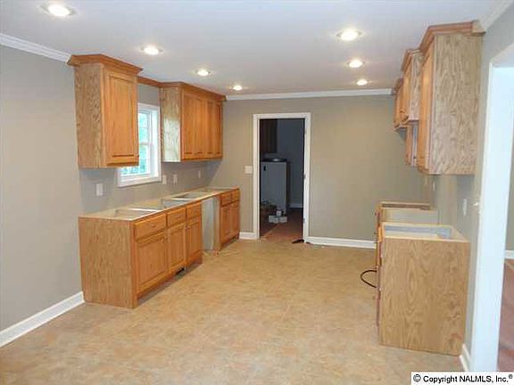 Call office @ 256.423.4411 for details. Completely remodeled home in 2012. New vinyl siding, roof, plumbing, electric, water heater & HVAC. New sheetrock and paint, new laminate flooring in family room & all three bedrooms, new tile in kitchen, baths, hall & laundry. New light fixtures inc. recessed, new doors, vanities, and kitchen & laundry cabinets. New granite counter tops in kitchen. New stainless steel kitchen appliances including refrigerator. New covered back deck, new concrete drive & parking area. Fresh landscaping & treed back yard. New pictures to come.
