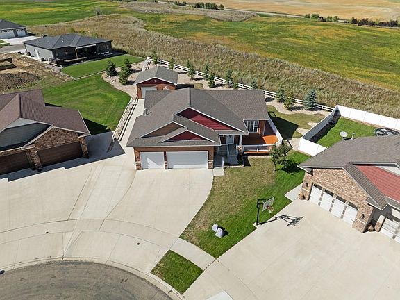 Welcome to 2709 20th St NW, a charming ranch-style home nestled in a peaceful cul-de-sac with no backyard neighbors, offering extra privacy and tranquility. Step inside to an open layout where timeless hardwood flooring flows seamlessly through the dining and living areas. The kitchen is a chef's dream, featuring a two-tiered island, granite countertops, dedicated pantry, and stainless steel appliance suite with gas range and brand new refrigerator. Down the hall, you’ll find three spacious bedrooms, including the primary suite, which boasts a tray ceiling, ensuite bathroom, and walk-in closet. The lower level is ideal for entertaining, with a large daylight family room and versatile bonus area, complete with vinyl plank flooring and built-in cabinetry for extra storage. This flexible space could serve as a home gym, play area, or media room. Additionally, the lower level offers bedrooms four and five, third full bathroom, and abundant storage space. Outside, the wrap around deck is perfect for relaxing or hosting gatherings, surrounded by mature landscaping, evergreens, and custom rock work. The property also includes an impressive 24x24 heated shop, ideal for hobbies or extra storage. Additional features of this home include durable LP siding, supplemental electric heating in the lower level, newer furnace with an Aprilaire humidistat, on-demand water heater, custom plantation blinds, main floor laundry, and freshly painted garage interior. Located in the highly sought-after Pheasant Run Subdivision, this home offers easy access to Ramstad Middle School, Minot North High School, and the 83 Bypass. Larger than it looks, this home checks all the boxes!