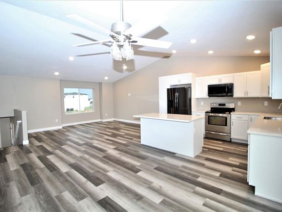 Do you want a new construction that will be ready to move in by January 31, 2022?!! This 3,078 sq ft split-level house is currently being built. The main floor of this house has 3 bedrooms, 2 baths, and an open living concept. The kitchen has white cabinets in the L shape, a navy blue island, and stainless appliances. The master bedroom has a walk in closet, white cabinets, and a bathroom with a white subway tile shower with a black hexagon niche. Downstairs there are 2 more bedrooms bringing the total to 5, an additional bathroom with grey cabinets, huge family room, and laundry. These homes feature solid 3 panel white doors, white trim, plank flooring on the main living area and bathrooms that is a light timeless tone, and carpet in bedrooms and family room areas. The garage is fully sheet rocked and insulated with floor drain and gas line for future heater. There are slow close cabinets, quartz counters throughout that the buyer will pick, and it is fully LOCALLY built! The exterior is white vinyl siding, with black brick and garage doors. The buyer can select quartz counters, paint color, and put their personal touch on it!  Pictures are from a previous model.