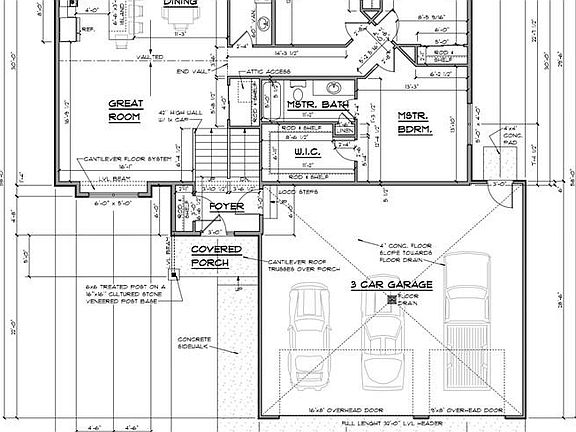 - Parking features: Attached, Garage: Floor Drains, Insulated, Lights, Opener, Sheet Rock, Driveway: Concrete