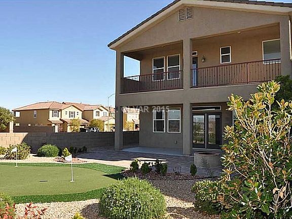 Elevated corner lot with magnificent views of the city, mountains and the Strip. Custom glass cabinets, decorative backsplash, 18x18 tile, granite counters, ceiling fans, Solar-powered frontyard landscape lighting, pavers, cozy firepit in back and putting green for summer fun! Washer, dryer, fridge, surround sound, alarm system, security cameras, & water treatment system - all of this PLUS a million-dollar view