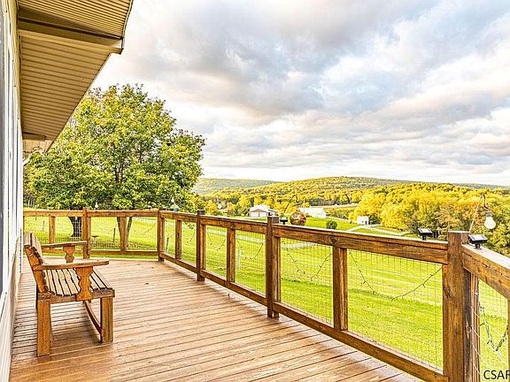 THE MOST BEAUTIFUL 360 VIEW OF PENNSYLVANIA MOUNTAINS! RARE LOCATION! CHARMING HOUSE WITH LARGE NEWER WINDOWS ON THREE SEASON PORCH- AND. YOU WILL SEE THE SEASONS IN ALL THEIR BEAUTY! SIT OUT ON DECK AND DRINK YOUR COFFEE EVERY MORNING, WATCH THE SUNSET AND SUNRISE. UPDATED BATH, LARGE 2 CAR GARAGE. WOOD BEAMS IN 3 SEASON PORCH. KITCHEN WITH PASS THROUGH COUNTER, MAKE THIS HOUSE YOUR OWN, RUSTIC, PRIVATE, QUIET. WATCH THE WILDLIFE. LARGE PAVED DRIVEWAY. SURROUNDED BY HILLS AND FIELDS. WATCH THE HORSES BELOW AT NEIGHBORING FARMS. LARGE LEVEL YARD, BIG ENOUGH TO ADD A POOL OR SOCCER FIELD. THIS IS A VIEW THAT ONLY COMES AROUND ONCE IN A GREAT WHILE. ONE LEVEL HOME/RANCH STYLE. WATCH THE STARS EVERY NIGHT WITHOUT ANY INTERRUPTING LIGHTS!