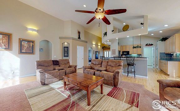 Stunning ranch in Rigden Farm. Soaring vaulted ceilings and hickory floors in kitchen, dining, and living rooms create an inviting gathering area. Two master suites on main floor. Basement family room made for entertaining with surround sound wiring, bar area, and game area. Dream hobby room and 2 big bedrooms in basement. Meticulously maintained home with records. Two new hot water heaters, hail resistant roof. Small, private, low maintenance yard. Fantasic storage. Garage workshop.