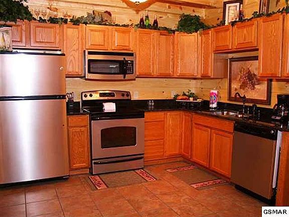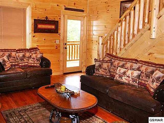 Custom Built Log Home located close to Pigeon Forge that sleeps 8!! Entry Main Level opens up to spacious living room and a warm woodburning fireplace! Kitchen equipped Stainless Steel Appliances, Dining Rm has extra seating at Bkft Bar. 2 Master King Size Suites, w/ 2 Ba on Main Level. Upstairs ready for you to entertain, Pool Table, Wet-Bar and Multi Game Video Arcade Machine. Home Theater Room w/ Big Screen Projection TV system and Leather Theater Seating. Enjoy your new outdoors with a Firepit or hot tub while overlooking Mtn Views! Brokered And Advertised By: Kings of Real Estate Listing Agent: TRACY KING