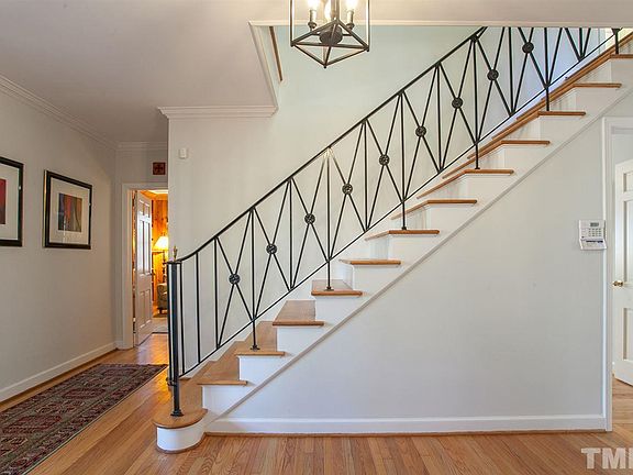 In a nod toward Charlestonian architecture, this mid-century Colonial features Creole details in its double galleries & wrought-iron columns and railings.Constructed by famed Dur. builder Geo. Birmingham for Duke Univ. professor & 1st registrar Dr. Richard Tuthill & family. The home boasts large, bright rooms perfect for entertaining, & a thoughtful layout for easy living. Oak hardwood floors, gas FP, SS app. & many modern upgrades, all set on a carefully landscaped 3/4 acre lot w/ forested backdrop.