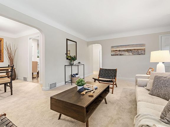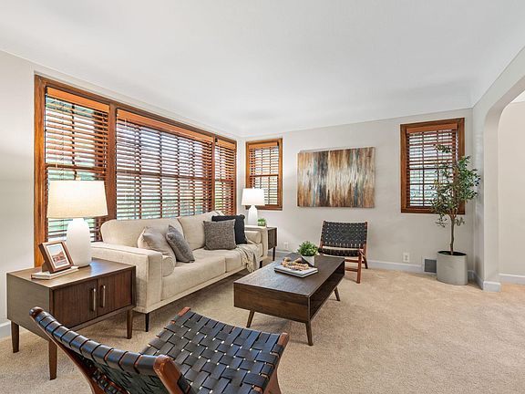 MULTIPLE OFFERS - HIGHEST AND BEST DUE SATURDAY JUNE 28 AT 5PM. Welcome to this charming one-story rambler that’s full of warmth and thoughtful updates. Step inside to fresh carpet and paint throughout the main level, creating a clean, move-in ready feel. The inviting main level features a nicely updated kitchen with stainless steel appliances. You'll also find two spacious bedrooms and a beautifully remodeled full bathroom. Enjoy your morning coffee on the front porch or unwind in the cozy 3-season sunroom overlooking the private backyard—ideal for relaxing or entertaining. Set in a quiet, well-established neighborhood filled with charm and mature trees, this home offers both comfort and convenience. Recent updates include a newer roof, upstairs bath remodel (2024), water heater, new carpet, fresh paint throughout the main level, giving the home a fresh, modern feel. Downstairs, the finished lower level is the perfect hangout space with a fireplace and built-in projector screen—movie nights just got an upgrade! Additional highlights include a tuck-under garage and easy access to nearby walking trails, shops, and everyday conveniences. This home has the perfect blend of style, function, and location—don't miss your chance to make it yours!