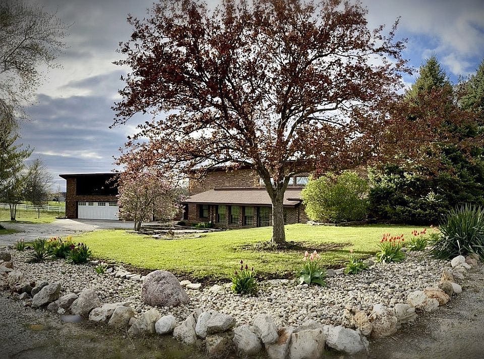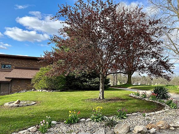 Gorgeous Setting! Beautifully landscaped, An All Brick Ranch on 1.38 acres! Open floor plan features vaulted ceilings, brick walls, 3 bedrooms, Totally Remodeled 2 full baths, Newer throughout the house-Flooring, trim work, paint, electrical devices, lighting/fans, refinished doors with newer hardware. The kitchen has refinished white cabinets with newer hardware and sink. The 2.5 car heated garage has a complete remodel-drywall, insulation, furnace/duct work, utility sink, lighting, electrical devices, door opener, insulated garage door, epoxy floor all the above by present owner. 2 enclosed porches measure 26x12 and 12x8. 10x12 room off of bedroom which could be used as a study. Exterior covered porch 17x12. Master suite with attached bath and walk-in closet. Newer roof in 2011, furnace 2011, A/C 2012