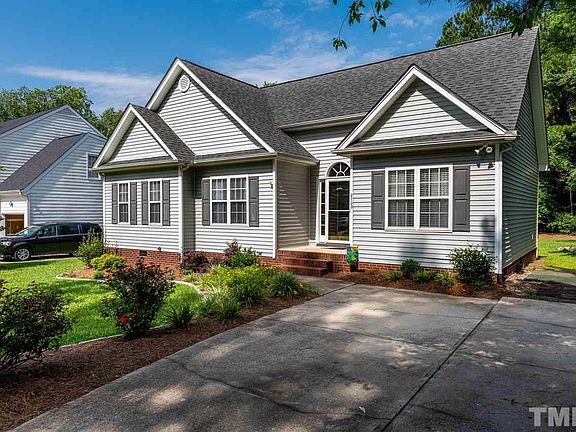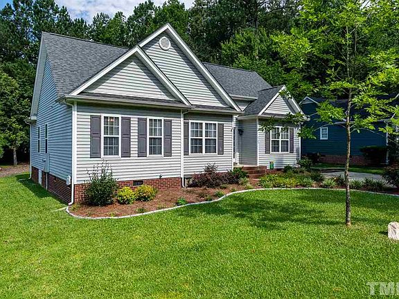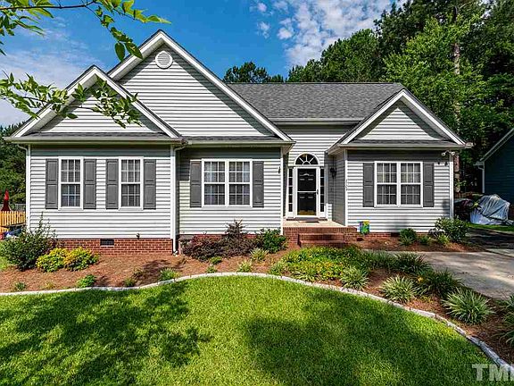 Adorable 3 BR Ranch in Apex without city taxes!! Open floor plan with vaulted ceilings, deck off kitchen that opens to a nice, flat back yard! Owner has done many updates since buying this well maintained home in 2017: new roof, new hardwoods and blinds throughout, new bathroom flooring, vapor barrier, sump pump, dehumidifier and new insulation in the crawl space, replaced the front and back storm doors, added french drains in back/side yard, and re-concreted the front porch. Come see this home today!