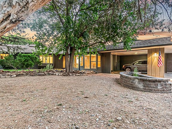 Mid-Century Modern Gem in North Grand Junction – 2709 Midway Avenue. This meticulously remodeled mid-century modern home blends timeless charm with contemporary sophistication. Perched on a private and spacious .40-acre lot, this stunning property sits just above the new LDS Temple, offering a serene and elevated setting. Step through the eye-catching red front door into a welcoming atrium that sets the tone for the home’s stylish design. The open-concept layout is both inviting and functional, centering around a show stopping kitchen featuring sleek flat-panel cabinetry, modern lighting, and high-end Z-Line appliances. The kitchen seamlessly flows into the dining and living areas, where a striking brick gas fireplace with a German smear finish serves as a captivating focal point. Adjacent to the kitchen, a cozy sitting area leads to an expansive pantry, ensuring ample storage space. The south wing of the home offers a versatile family room with a charming window seat and distinctive metal sliding closet doors. Three generously sized bedrooms and a beautifully appointed secondary bathroom provide comfort and style. The southwest wing is dedicated to the primary suite—an elegant retreat designed to impress. This luxurious space features a private fireplace, an expansive walk-in closet, and high-end designer finishes. The en-suite bathroom is a true sanctuary, boasting hexagon tile flooring, a seamless walk-in shower with glass doors, and floor-to-ceiling tile extending to a skylight, creating a bright and spa-like ambiance. Outside, you’ll find multiple patio areas, lush landscaping, and dedicated gardening spaces, making the outdoor living experience just as inviting as the interior. A 2-car attached garage and a 2-car attached carport provide plenty of space for vehicles and storage. Perfectly situated near grocery stores, shopping, dining, and everyday conveniences, this home offers the ideal blend of privacy and accessibility. Don’t miss your chance to own this exceptional mid-century modern masterpiece—schedule your private showing today!