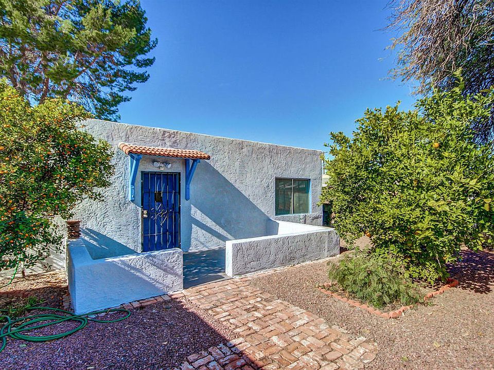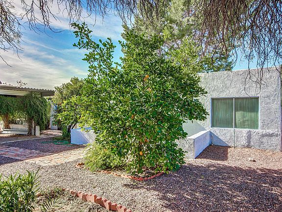 Fantastic 2 bed, in central Tucson. This property has much to be desired in thecentrally located ''Flower Dodge'' Alvernon neighborhood. Gorgeous exterior with lush landscaping. Inside features plush carpeting and neutral interior palette. Comfy sized rooms, also with plush carpeting. Full bath with convenient built-in storage. Window air conditioners in both bedrooms. There are security bars on all exterior doors. Front yard shaded carport. Good sized fenced backyard with brick patio and large pine shadingoutdoor living space could be enjoyed by family, friendsand pets. Fruiting treesinclude Loquat and Blood orange and Calamondin citrus trees.Lots of built-in door storage, with 4 sizable outdoor sheds. Close to bus line, Walmart, dining and retailshopping. This is move in ready.