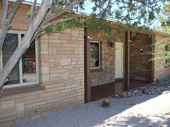 Gorgeously updated '40s bungalow with high ceilings and a cozy fireplace in the stylish family room. Stainless steel appliances and concrete counter tops in the kitchen. Maple kitchen cabinets and hallway/bathroom/closet doors. Polished concrete floors throughout. Mature mesquite, cedar, citrus, peach and other trees adorn expansive back yard surrounded by corrugated metal fencing with plenty of room for entertaining and a unique stone outdoor fireplace/grill. New AC with 10-year warranty installed in 2014. New roof with 50-year warranty in 2015.
