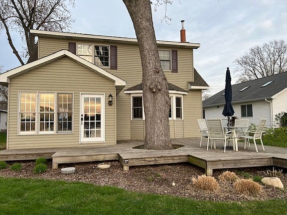 Nestled along the Fox River, this lovely home is a perfect blend of charm and modern comfort. Enjoy stunning water views from nearly every room, creating a serene and picturesque atmosphere. The spacious main floor features an open-concept dining and living room combo perfect for gathering and entertaining. Plenty of natural light streams in making the space feel warm and inviting. The layout allows for seamless flow and flexible furniture arrangements to suit any style. A 4-season room provides a perfect spot to relax and take in the beauty of all four seasons. The kitchen has SS appliances and built-in cabinetry with glass doors to display your favorite dinnerware, crystal, heirlooms, etc. A main floor full bath adds accessibility and the roomy laundry room ensures functionality. The second floor of this home offers a generously sized primary bedroom with walk-in closet and an additional "shoe closet", providing a tranquil retreat with plenty of space for a cozy seating area or additional furnishings. The large second bedroom is equally inviting. A second full bath is located on this level. A thoughtfully designed desk area is also situated on the second floor, perfect for working from home, studying, or creative projects. Step outside to a sprawling deck that's perfect for outdoor living and dining. The deck provides an ideal spot to take in the serene river views. This outdoor oasis is a true extension of the home's charm and functionality. The lush perennial gardens bloom beautifully, adding vibrant color and character to the landscape. The oversized 2-car heated garage has an insulated ceiling and pull-down stairs for easy loft area storage. This riverfront gem is an idyllic retreat for year-round living!