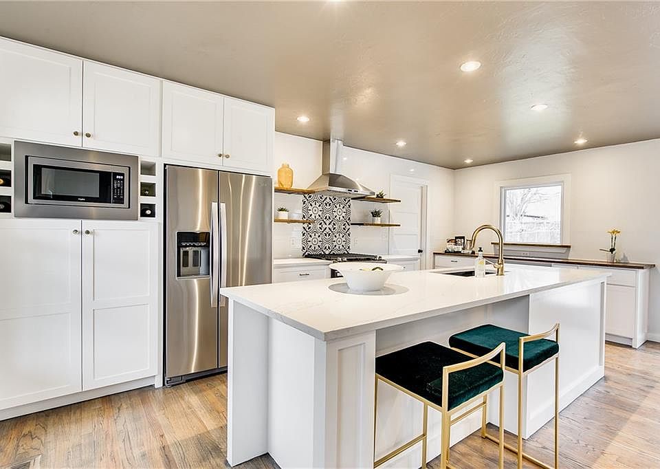 You won't ever want to leave this gorgeous, spectacular COMPLETELY RENOVATED home! Fantastic location! Plentiful natural light shines through new windows, and 3-panel french doors! Just moments from Classen Curve, Nichols Hills, and May avenue shopping. High-end finishes and PURE LUXURY. This one is a stunner!! Designer custom kitchen featuring new custom cabinetry, champagne bronzed kitchen faucet to accent matching cabinet/drawer hardware and updated bathroom finishes. Home organization station/office/coffee bar and open shelving using reclaimed cargo flooring! Oversized kitchen island (with storage) with high-end quartz will seat 5-6! Tile backsplash with designer feature behind the stove. Brand new appliances including gas range, built-in microwave & dishwasher, new refrigerator. Refinished original oak hardwoods throughout. Totally renovated bathroom with white subway tiled shower, and black mosaic designer bathroom tile flooring. Schedule your showing today!