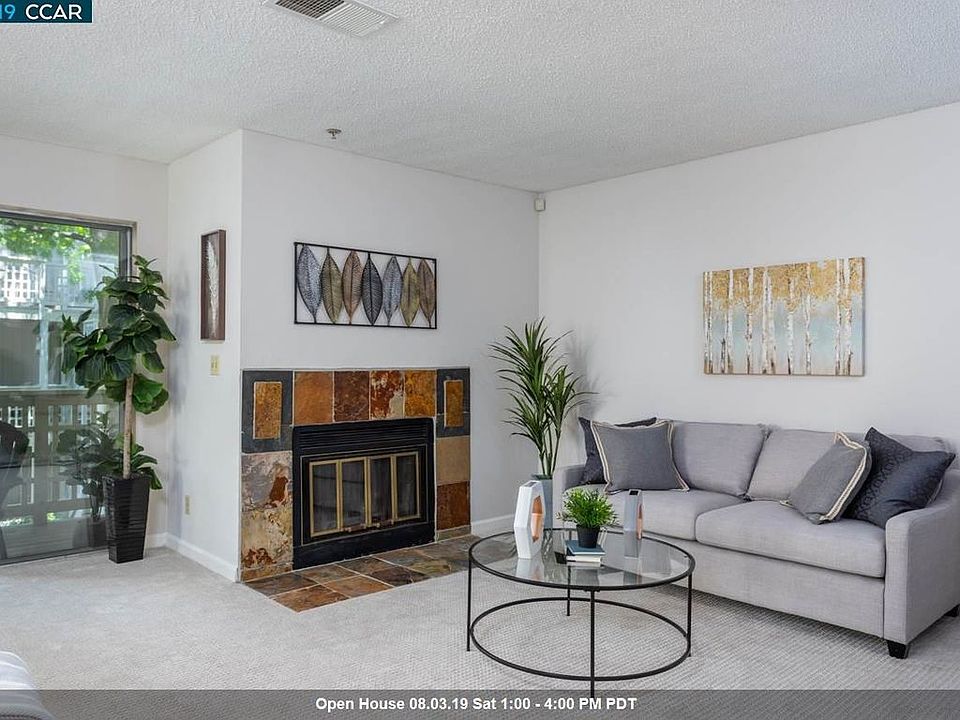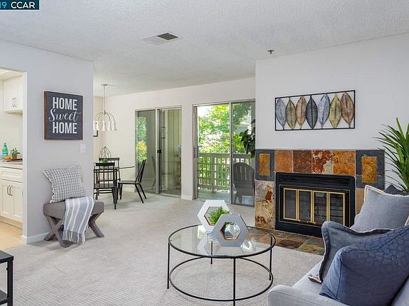 Lovely, RECENTLY UPDATED CORNER UNIT in The Villas NEAR BART, desirable schools and downtown Walnut Creek! BRAND NEW KITCHEN includes white shaker style cabinetry, pantry, quartz countertops with extended breakfast counter, new stainless steel appliances and ceramic tile floor. Living room offers slate surround wood burning fireplace and 2 sliding doors that open to a private balcony with large storage closet. Other amenities include: NEW CARPETING, door hardware, window blinds, FRESHLY PAINTED INTERIOR, master bedroom with large walk-in closet and IN-UNIT WASHER/DRYER. No rental restrictions at this time.