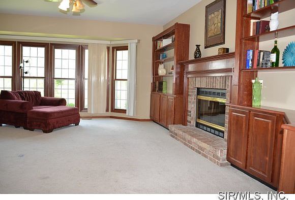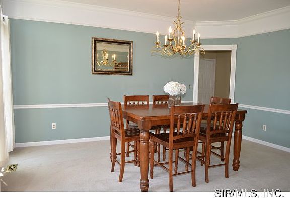 Perfect golf course lot with open views of the green and club house on almost a half acre lot! All of the upgrades from the formal dining room and den with bay windows, to the two story foyer entry, extra large eat in kitchen with island, built in double oven, and work station. The family room has a fireplace with beautiful bookcases surrounding. Upstairs you'll find 4 bedrooms each having their own bathroom or shared jack and jill! The large master bedroom has vaulted ceiling, walk in closet, and luxury bath with a gorgeous corner soaking tub and dual vanity sinks. All of this with a 3 car garage and a full basement just waiting to be finished. Mascoutah schools, community pool and tennis courts!