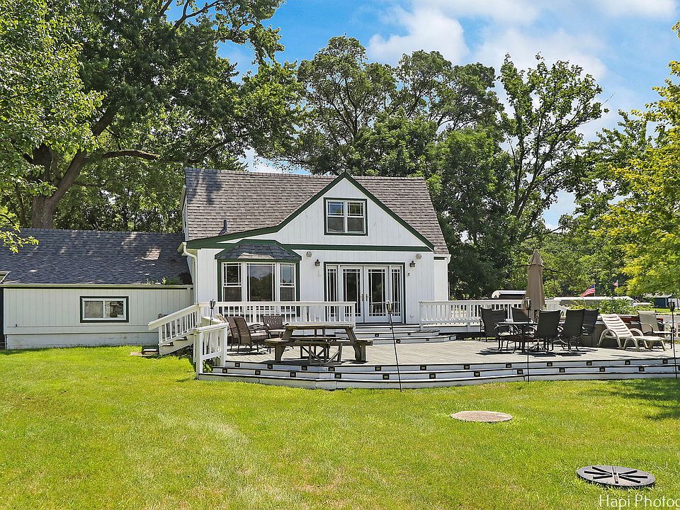HERE IS YOUR CHANCE TO OWN A PIECE OF PARADISE ON THE UPPER FOX RIVER. THIS LOVELY RIVERFRONT PROPERTY WITH 116 FEET OF RIVER FRONTAGE IS LOCATED JUST NORTH OF THE STRATTON LOCK AND DAM ALONG THE EAST SHORE OF THE RIVER. GORGEOUS EVER-CHANGING SUNSET VIEWS ARE MUCH TO BE DESIRED. ACCESS TO THE ENTIRE CHAIN O'LAKES AND BEAUTIFUL LOWER RIVER JUST MINUTES AWAY. FABULOUS SAND BEACH ADJACENT TO THE PROPERTY IS PERFECT FOR SWIMMING AND OFFERS A SWIM RAFT. THIS CHARMING FOUR BEDROOM, TWO FULL BATH HOME IS LARGER THAN IT LOOKS. EXPANSIVE FOX RIVER FRONT LOT FEATURES PERMANENT PIER, NEW STONE AND STEEL SEAWALLS AND BEAUTIFUL NEW STONE FIRE PIT. THERE'S SO MUCH SPACE FOR ENTERTAINING ON THE 42X31 TWO-TIER DECK OR MAKE IT YOUR OWN PEACEFUL HAVEN FOR QUIET DAYS IN THE SUN. FRENCH DOORS OPEN TO THE DINING ROOM WITH BUILT-IN CABINETS AND SHELVING. LIVING ROOM OFFERS A HARBOR VIEW. EATING AREA IS COMPLEMENTED BY SKYLIGHT AND BAY WINDOW OVERLOOKING THE RIVER. ALL WITH BAMBOO FLOORING. SPACIOUS UPDATED KITCHEN WITH MANY CABINETS, TILE BACKSPLASH, AMPLE GRANITE COUNTERS AND STAINLESS STEEL APPLIANCES. TILE FLOOR CONTINUES TO THE OFFICE WITH BUILT-IN DESK, CABINETS AND LARGE CLOSET. FAMILY ROOM FEATURES HIGH CEILINGS, TWO LARGE CLOSETS, EXTERIOR DOOR AND ACCESS TO LAUNDRY AREA WITH BUILT-IN BAR, REFRIGERATOR, WASHER, DRYER AND 200 AMP ELECTRICAL PANEL. LARGE UTILITY CLOSET HAS FURNACE AND WATER HEATER. FOURTH BEDROOM WITH BIG CLOSET AND NICELY UPDATED FULL BATH WITH TUB ARE ALSO ON THE FIRST FLOOR. PLUS THERE'S THREE MORE SECOND LEVEL BEDROOMS AND FULL BATH. MASTER BEDROOM OFFERS LARGE CLOSET AND CROWN MOLDING. NICELY UPDATED BATHROOM IS JUST OFF THE MASTER BEDROOM. SECOND BEDROOM IS ALL KNOTTY PINE WITH BUILT-IN CABINETS, CLOSETS AND RIVER & HARBOR VIEWS. THIRD BEDROOM IS PERFECT FOR THE KIDS WITH BUILT-IN CUBBIES AND TWO PORTHOLES TO WATCH THE ADULTS BELOW. SO MUCH SPACE TO OFFER YOUR GUESTS! PLENTY OF STORAGE AREAS WITHIN THE HOME. PLUS THE 2-1/2 CAR GARAGE AND ADDITIONAL SPACE FOR PARKING IN THE SIDE YARD. IF YOU HAVEN'T FOUND YOUR PRIVATE GET-AWAY YOU SHOULD SEE THIS PROPERTY NOW!