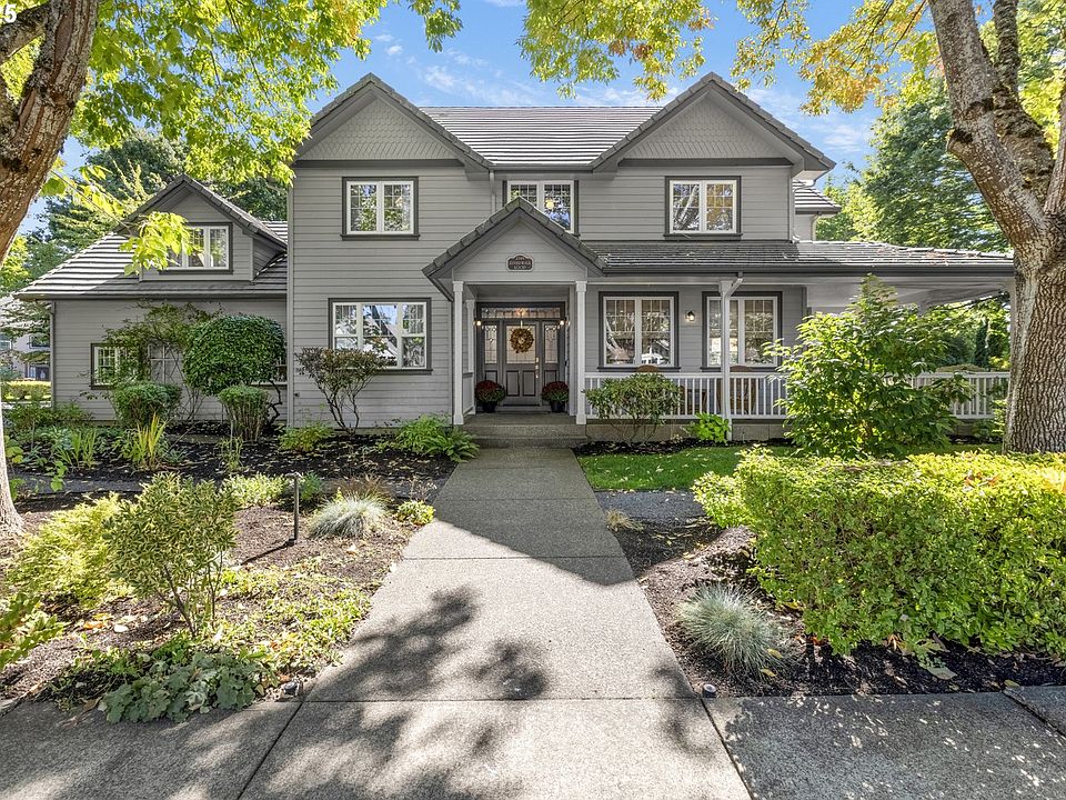 Luxury Home, Corner Lot in Sought-After Riverwalk Neighborhood of Valley River Village. Nestled in a quiet cul-de-sac near scenic bike paths along the Willamette River, this beautifully updated 4-bedroom + bonus/den home offers comfort, convenience, and natural beauty. Ideal location just minutes from schools, shopping, and parks! Step inside to a thoughtfully designed floor plan featuring, tall ceilings, a light-filled living area with a cozy double-sided gas fireplace that connects to the kitchen—perfect for cool mornings and gatherings. The recent remodel was top to bottom with new and updated flooring throughout the house. An updated gourmet kitchen that boasts marble countertops, stainless steel gas appliances, a wet bar, and both a casual eating nook with exterior access and a formal dining space. Upstairs, a bonus room with charming bay window provides flexible space for a den, playroom, or office. A second bay window on the mid-stair landing offers lovely outdoor views. The spacious owner’s suite features dual walk-in closets, dual vanities, soaking tub, and tiled shower—your personal retreat. Main-level laundry includes built-in storage, utility sink, and outdoor access for added convenience. Step outside into a large, professionally designed garden oasis—cultivated by a master gardener with an eye for year-round color. Towering summer roses bloom in multiple vibrant rounds, and the entire yard thrives without pesticides or herbicides, creating a peaceful, eco-friendly escape that’s perfect for entertaining or relaxing in private. Dual HVAC system replaced in 2024 with high efficiency system for comfort. Don’t miss this rare opportunity to own a move-in ready home in one of Eugene’s most desirable neighborhoods! OPEN HOUSE Saturday, 10/4 @12-2PM